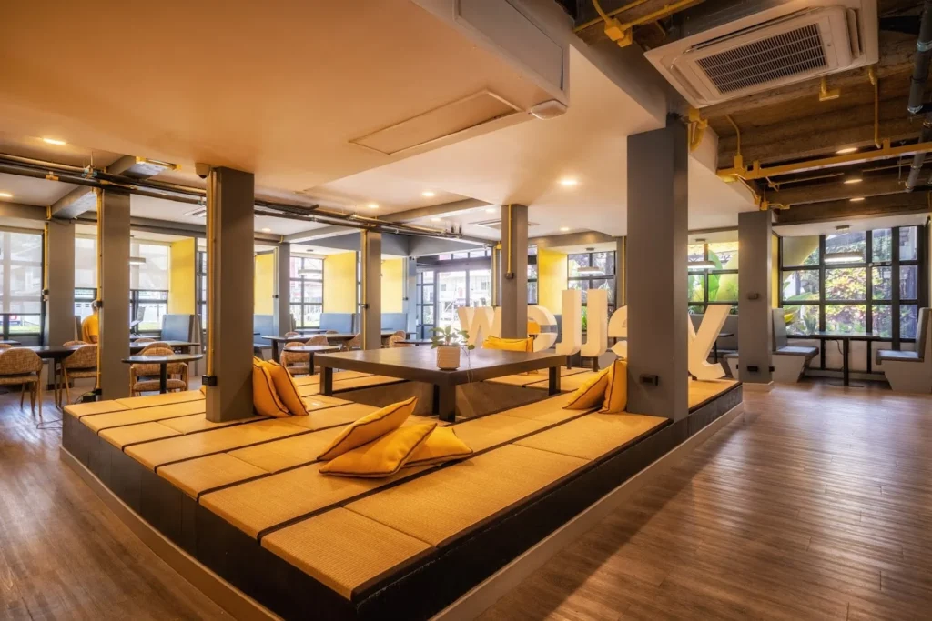 Situé dans le quartier Nimman de Chiang Mai, Yellow Coworking est un espace de 1 500 m² réputé pour son fort esprit communautaire. Il propose des sièges à l'intérieur et à l'extérieur, tous équipés de mobilier ergonomique et de cabines insonorisées.