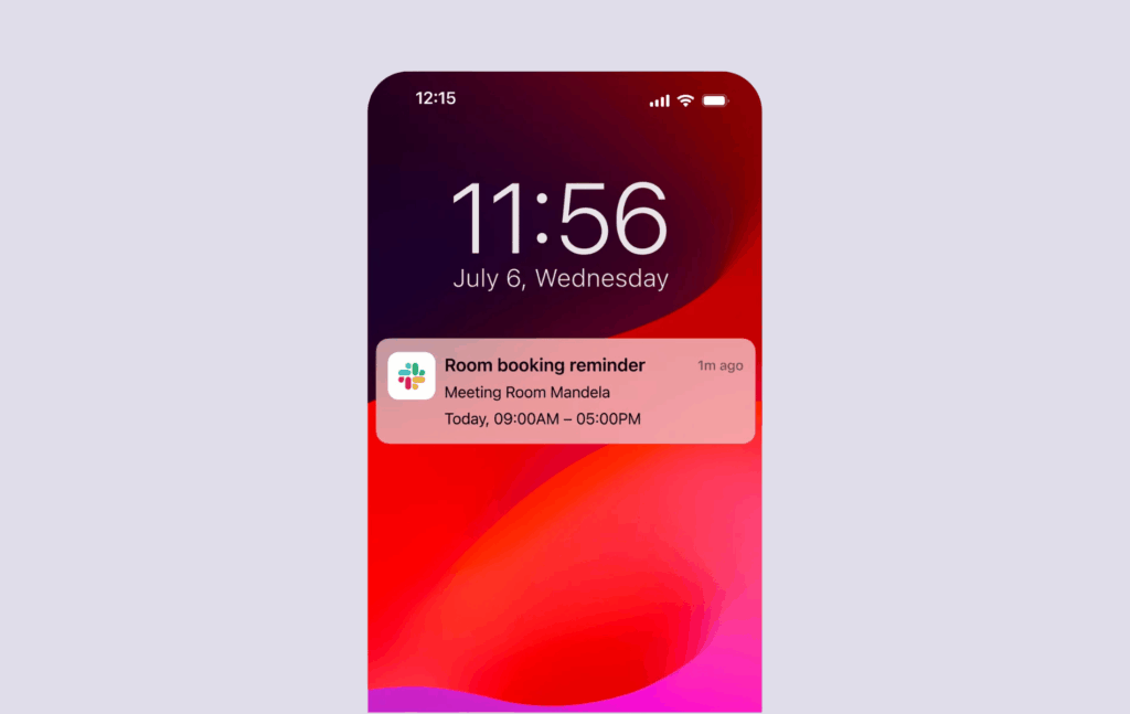 - A push notification on your phone asking, “Your meeting is starting. Check in to keep the room.”