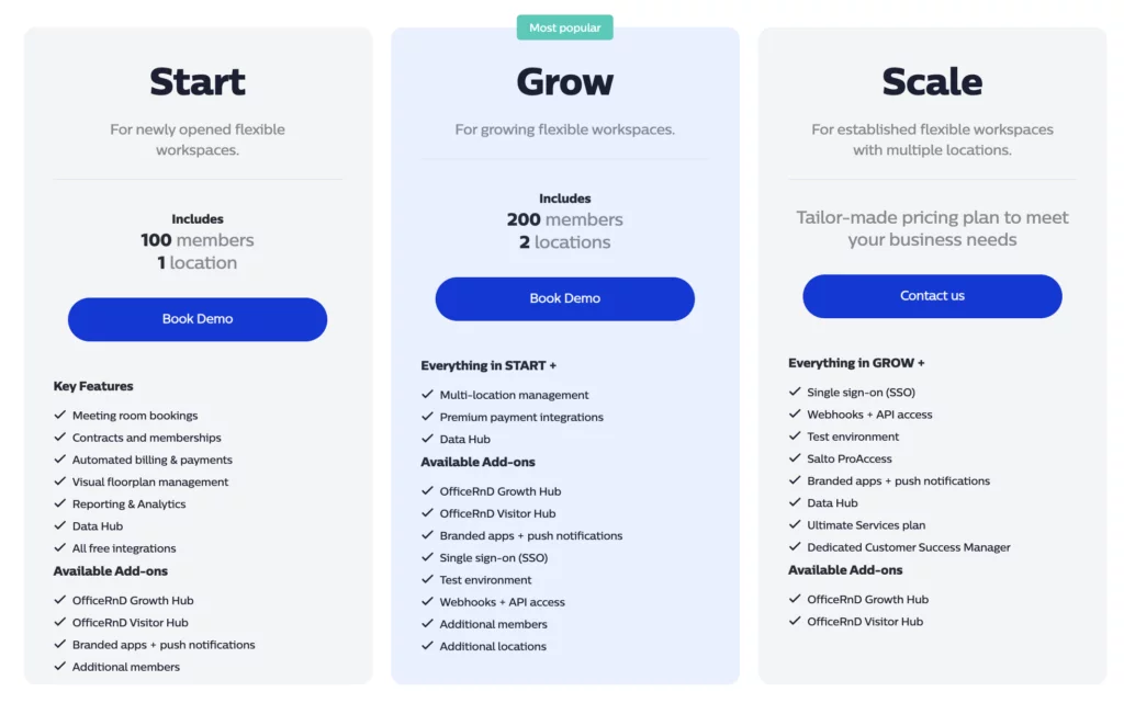 Pricing structure leaves something to be desired, too. It is no longer transparent, and some features, such as visitor management, the Growth Hub, premium support, and certain integrations, are treated as paid add-ons. This can drive up costs and make OfficeRnD less affordable for small to mid-sized coworking spaces.