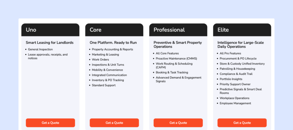 Property Automate does not publish public pricing. Costs are based on your setup, number of locations, and the modules you need. You’ll need to contact their sales team for a custom quote.